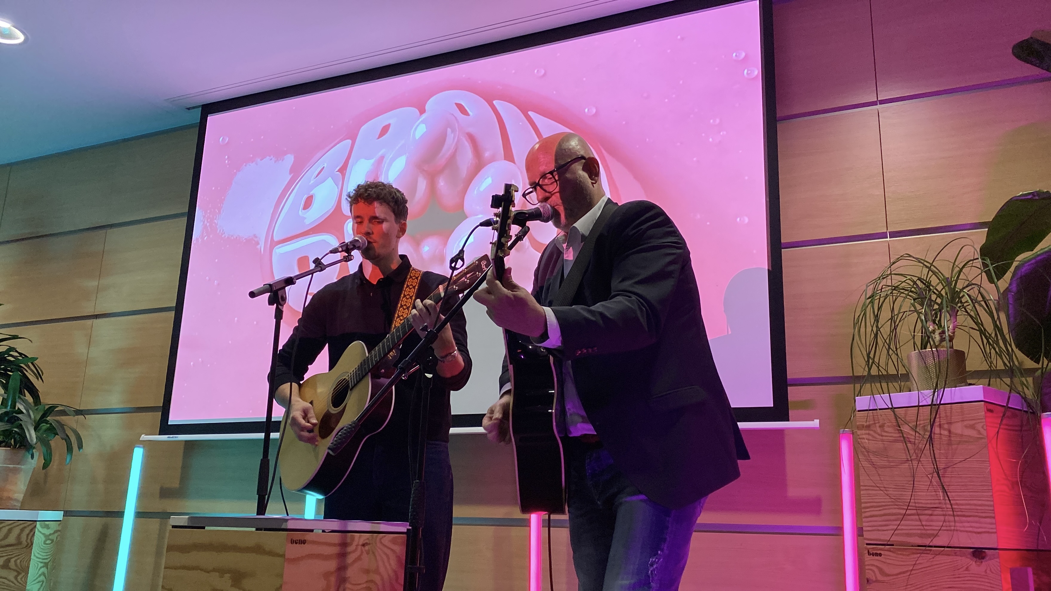 Und weil Mannheim nicht nur eine Stadt der Wissenschaft und Forschung ist, sondern auch „UNESCO City of Music“ rundeten Christian Sommer, Geschäftsführer der Next Mannheim Gründer:innen-Community und der Gründerzentren, begleitet von seinem Sohn Jonathan Sommer den BRAIN R!OT musikalisch mit einem eigens komponierten Blues ab. In ihrer Welturaufführung – dies sei erlaubt – erzählten sie von dem, was Wissenschaftlerinnen und Wissenschaftler erwartet, wenn sie die Technische Hochschule verlassen und in den Mannheimer Gründerzentren ihre Ideen in Business verwandeln.